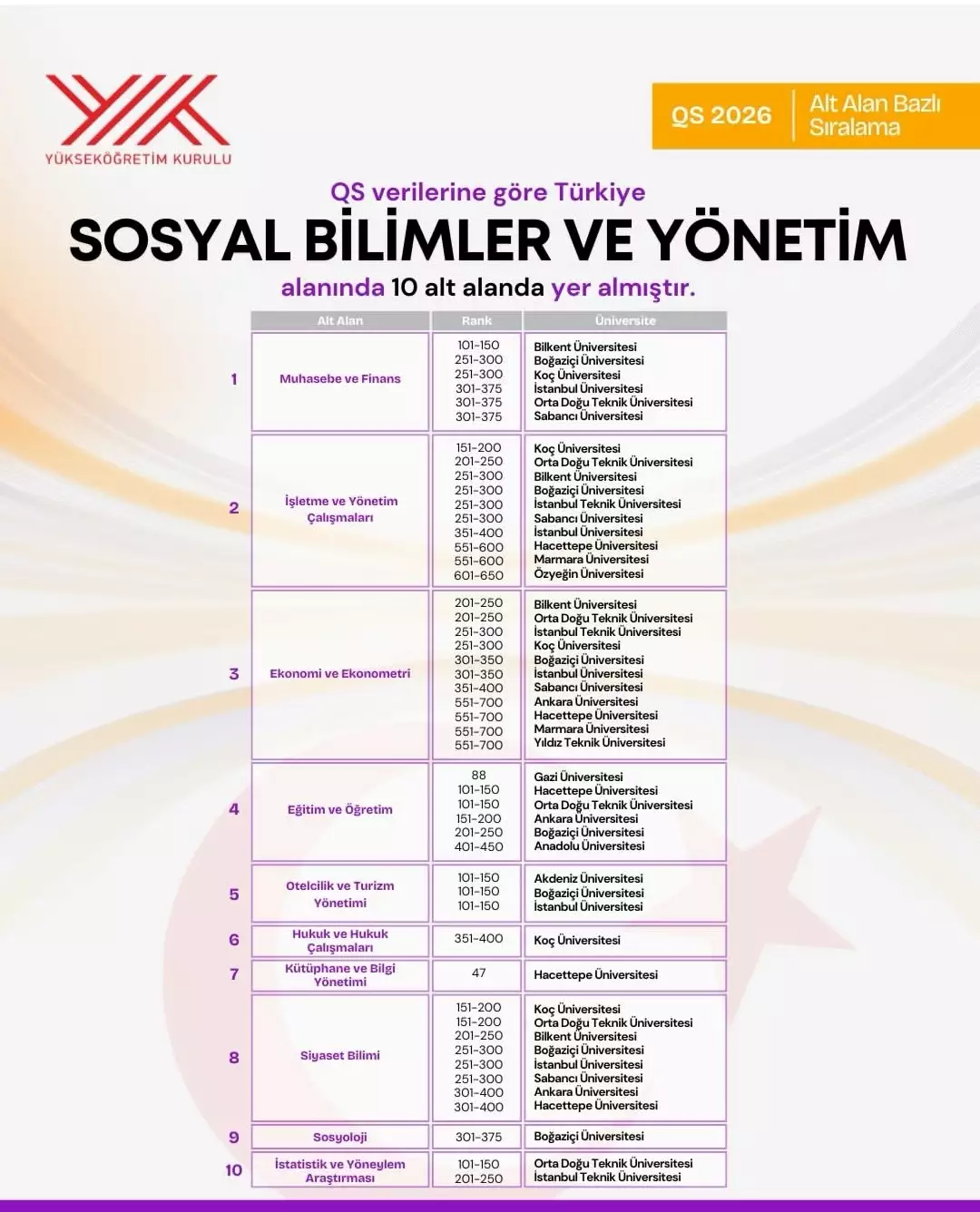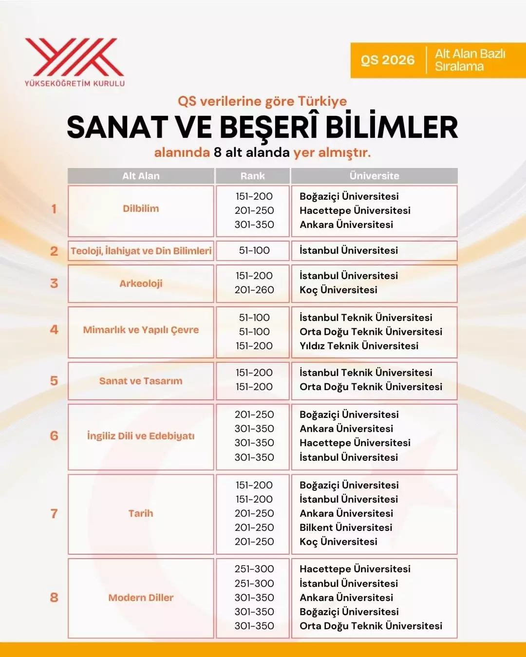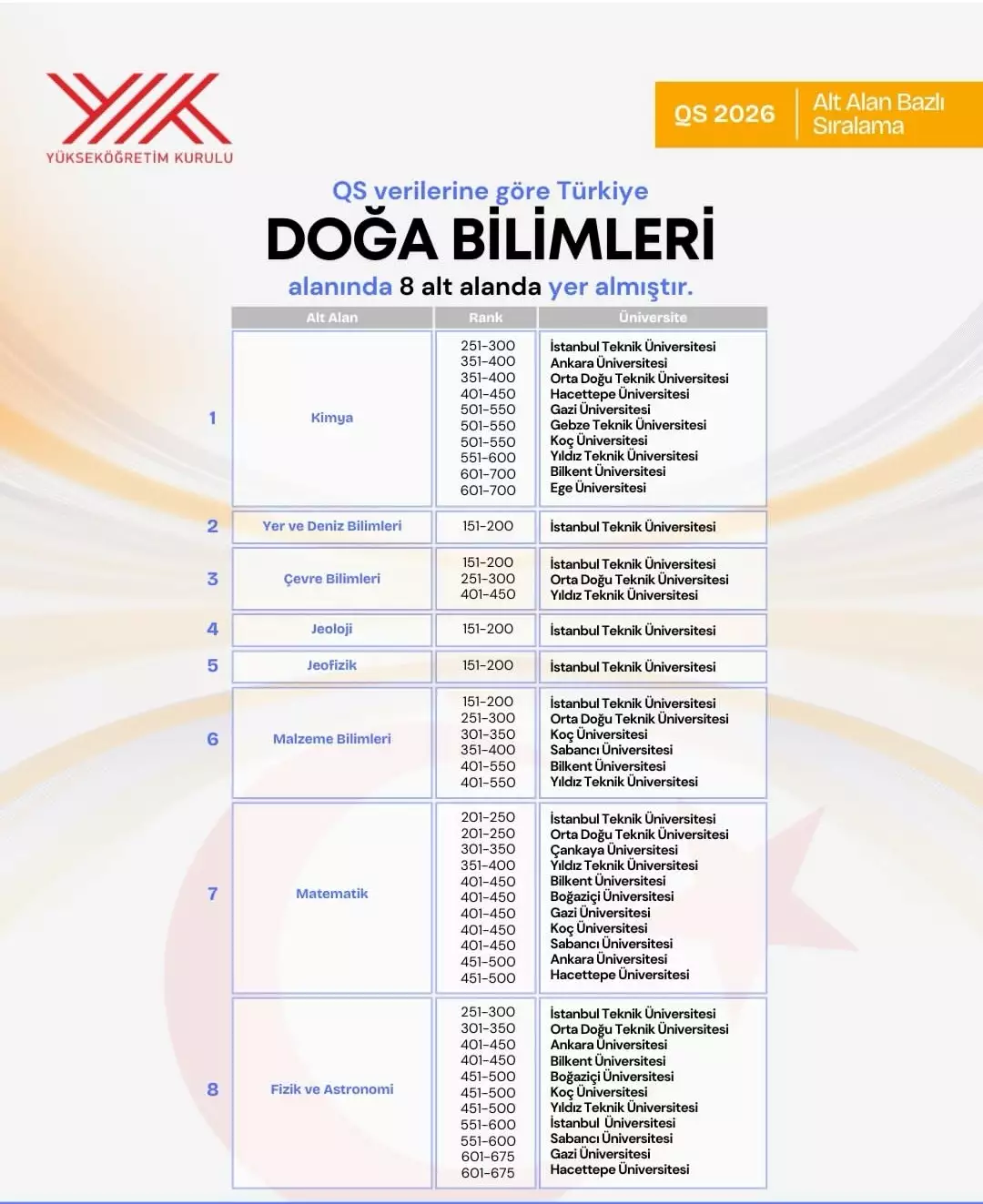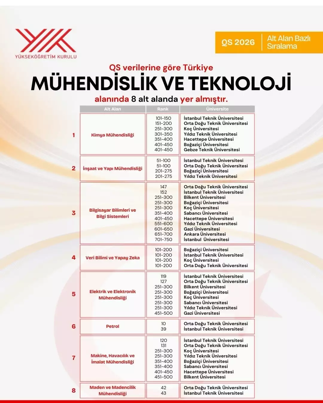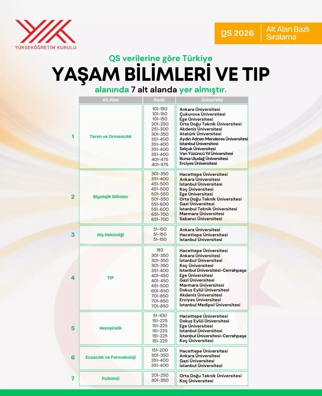 QS 2026 ALT ALAN BAZLI DÜNYA ÜNİVERSİTE SIRALAMASINDA TÜRKİYE