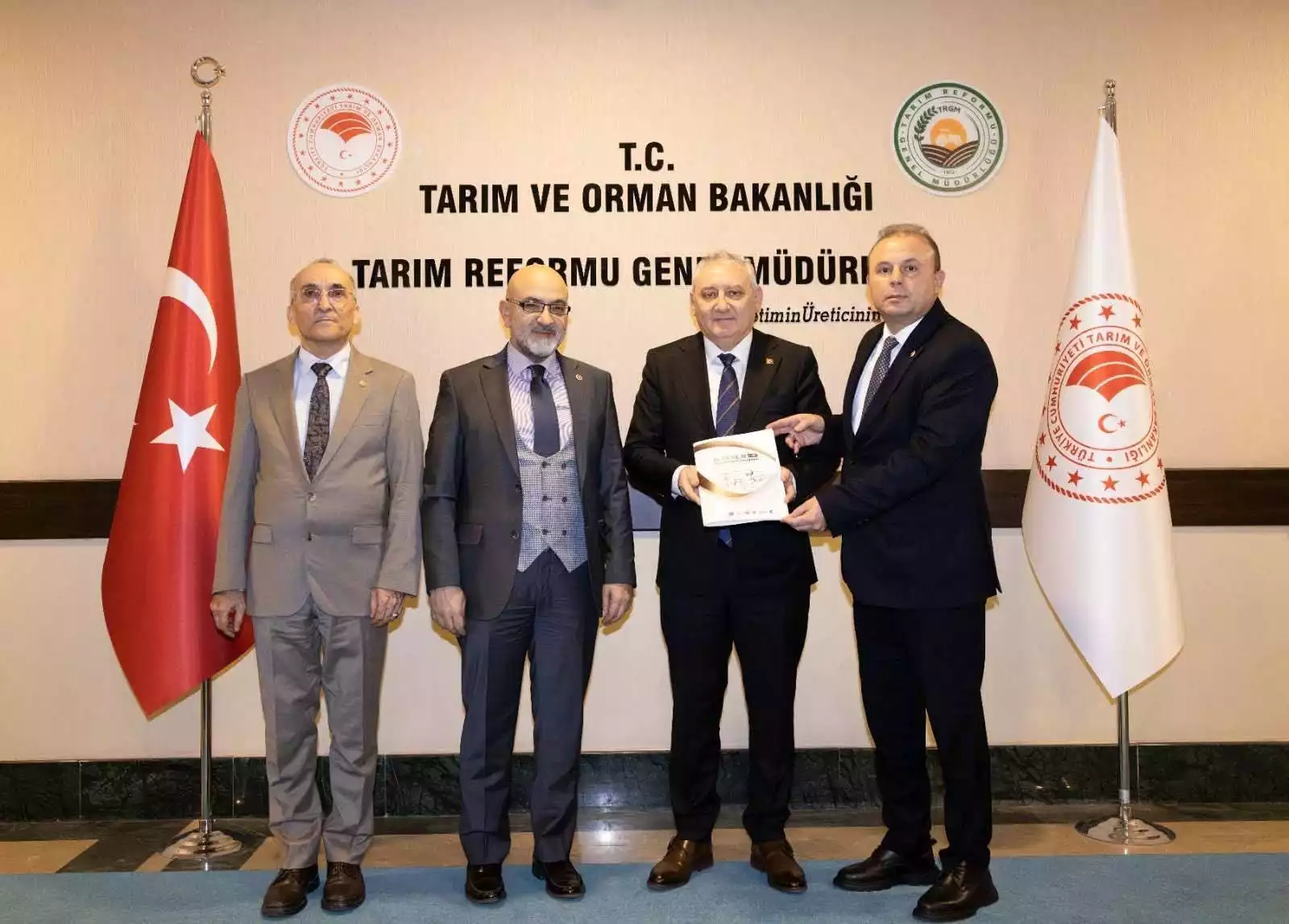 AK Parti Kayseri Milletvekili Sayın Dr. Murat Cahid CINGI, ERÜ Veteriner Fakültesi Dekanı Sayın Prof. Dr. Murat KANBUR, Kayseri Tarım ve Orman İl Müdürü Sayın Bülent SAKLAV, İl Müdür Yardımcısı Ergün TUĞLUK, Hayvan Sağlığı Şube Müdürü Abdullah ALTINSOY ve Kayseri Manda Yetiştiricileri Birliği Başkanı Ahmet TOPÇU ile birlikte Tarım Reformu Genel Müdürü Sayın Dr. Osman YILDIZ'ı makamında ziyaret ettiler. Ziyarette, Kayseri'mizdeki Mandacılık Çalıştayı ve Mandacılık faaliyetleri hakkında bilgilendirmelerde bulunarak Çalıştay Sonuç Raporunu takdim ettiler.