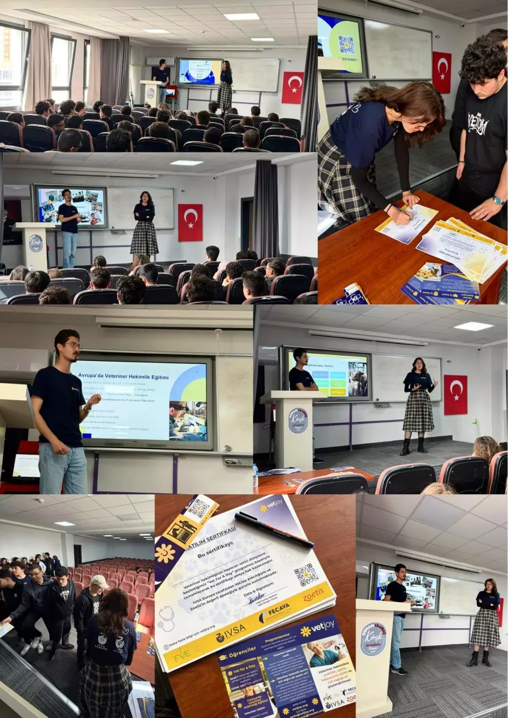Gerçekleştirdikleri sunum ile 11. ve 12. sınıf öğrencilerinden oluşan yaklaşık 100 kişilik öğrenci grubuna veteriner hekimlik eğitimi ve fakültemizin sunduğu imkanlar hakkında bilgi vererek öğrencilerin sorularını yanıtladılar.